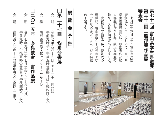 主に富山県内の書道教室のご案内しています。初心者の方でも先生が一から丁寧に指導してくれるので安心です。書道は日常に喜びと達成感をもたらし、ストレス解消や集中力向上にも効果的です。あなたも書道を通じて、新しい自分を発見してみませんか?